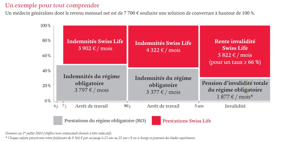 Depuis le 1er juillet 2021, savez-vous qu’en cas d’arrêt de travail, la CARMF attribue une indemnité journalière en cas d’incapacité temporaire totale, seulement à compter du 4ème jour d’arrêt de travail, qui couvre partiellement la perte de revenus ? Swiss Life peut vous garantir le maintien de vos revenus.